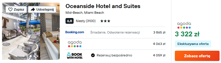 Na miejscu postaw na 3* hotel Oceanside. Obiekt znajduje się w północnej części Miami Beach, zaraz przy piaszczystej plaży.