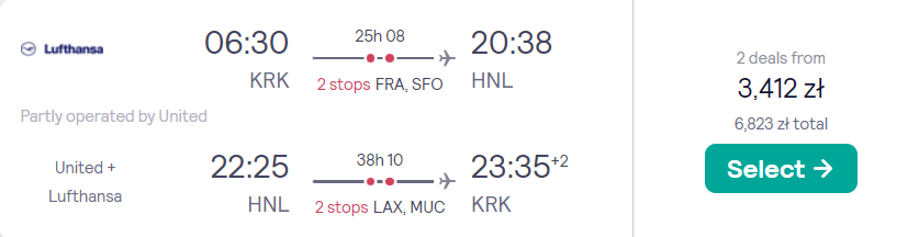 Do Honolulu udasz się z Warszawy i Krakowa w terminie 5-12 lutego. Loty odbywać się będą na pokładach samolotów linii lotniczych United i Lufthansa lub Delta. Po drodze zaplanowano bezpieczne przesiadki w Londynie i Los Angeles. Bez dodatkowych opłat będziecie mogli zabrać ze sobą bagaż podręczny.