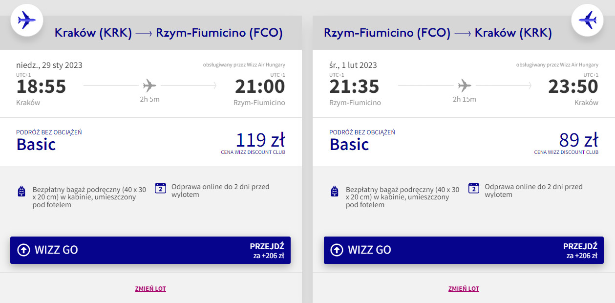 Nie posiadasz konta Wizz Discount Club? W takim razie za bilety zapłacisz 295 PLN/osoba (lot w dwie strony).