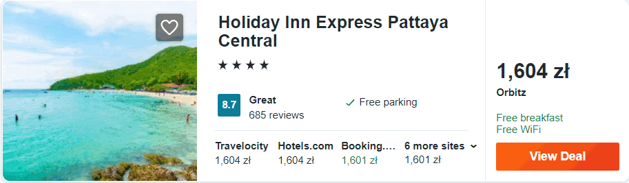 Na miejscu zakwaterowani będziecie w 4* hotelu Holiday Inn Express Pattaya Central. Znajduje się on w miejscowości Pattaya – do której na własną rękę będziecie musieli się udać po przylocie do Tajlandii. Więcej informacji na temat dojazdu znajdziecie w opisie poniżej.