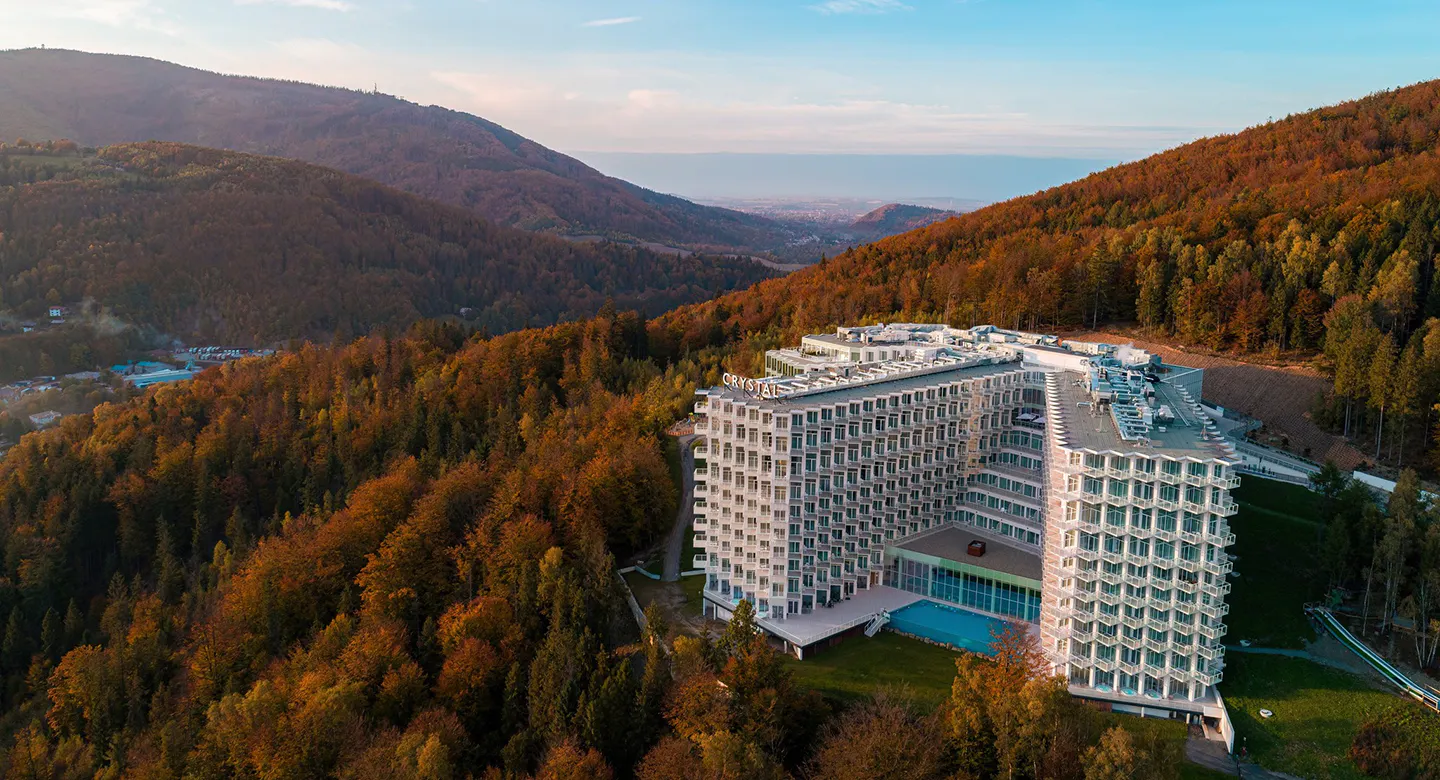 5* Crystal Mountain mieści się na zboczu Góry Bukowej w Wiśle, 5 min drogi od centrum miasteczka. W cenie otrzymacie śniadania i obiadokolacje, a także nielimitowany dostęp do jednego z największych hotelowych aquaparków w Polsce.