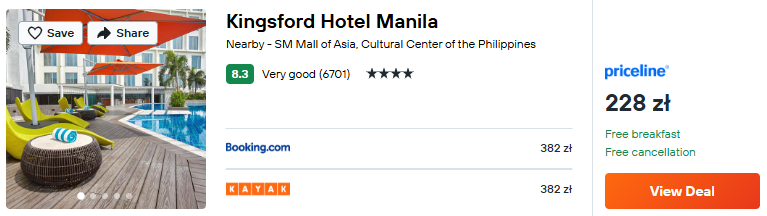 Odpoczynek po długiej podróży i aklimatyzację w Azji Południowo-Wschodniej rozpocznij od noclegów w bardzo dobrze ocenianym 4* hotelu Kingsford Manila.