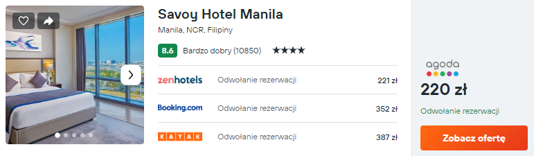 W Manili rekomenduję postawić na komfort. Pobyt w 4* hotelu Savoy z pewnością uprzyjemni zwiedzanie filipińskiej stolicy.