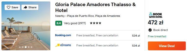 Na Gran Canarii zatrzymaj się w eleganckim 4* hotelu Gloria Palace Amadores Thalasso. Do twojej dyspozycji będzie basen z widokiem na ocean, strefa spa oraz restauracja. W cenę noclegu wliczone zostały śniadania.