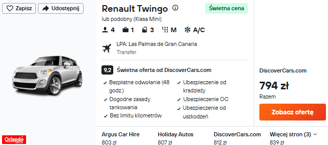 Samochód od 794 PLN/pobyt
