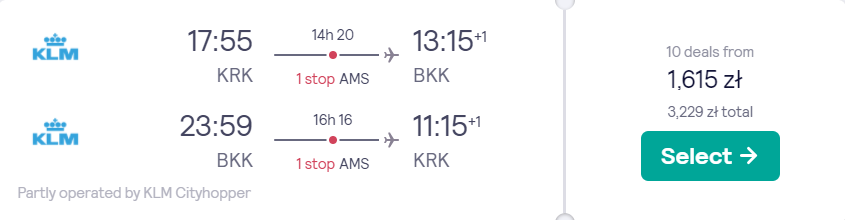 Tanie bilety (już od 1615 PLN) kupicie na podróże w czerwcu – dostępnych jest wiele terminów. Do Bangkoku udacie się z Warszawy, Krakowa, Wrocławia, Poznania i Gdańska. W obie strony (w zależności od wybranego przez was terminu) polecicie na pokładach samolotów linii KLM, Air France lub Finnair, a po drodze czekać was będą wygodne przesiadki na lotniskach w Amsterdamie, Paryżu lub Helsinkach.