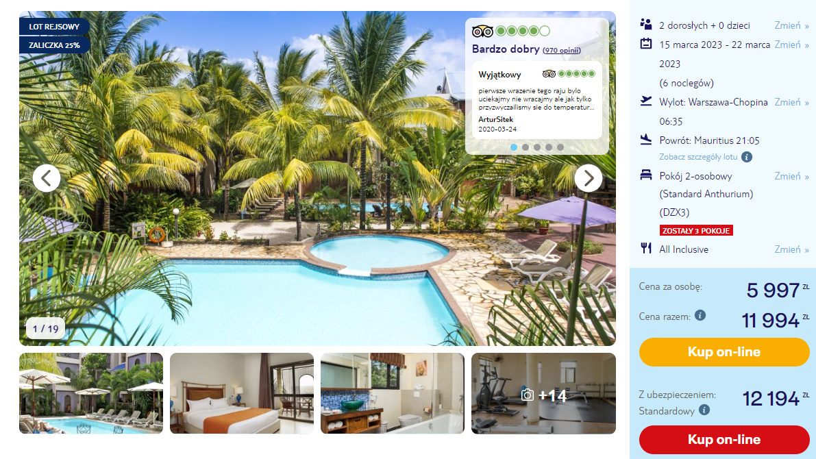 Na urlop do Afryki udacie się w terminie 15 -22 marca. Na Mauritius polecicie z jednego z 6 polskich miast (szczegóły poniżej) na pokładzie samolotów linii lotniczej Air France. Po drodze zaplanowano bezpieczne, gwarantowane przez przewoźnika przesiadki w Paryżu.