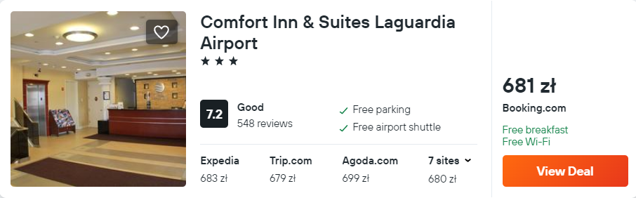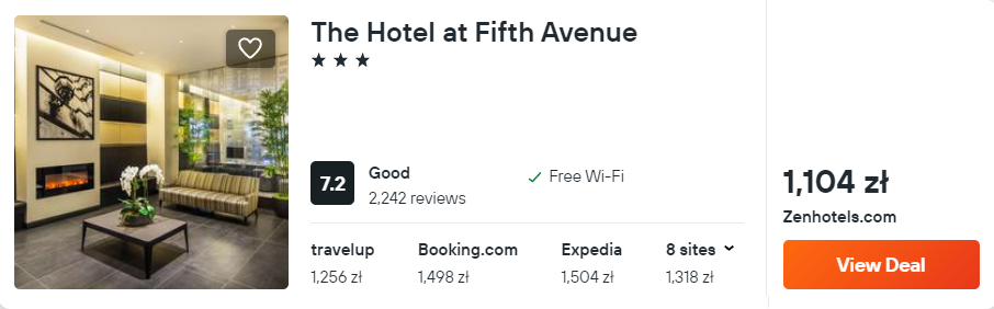 Natomiast jeśli wolisz noclegi nieco bliżej centrum miasta, wybierz 3* hotel at Fifth Avenue. Znajduje się on w samym sercu Manhattanu.