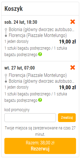 Flixbus | Bolonia – Florencja (kilka kursów dziennie) | 38 PLN | 24 lutego