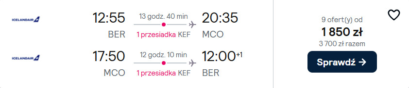 Na Florydę (Orlando) polecisz z Berlina linią Icelandair z przesiadkami w Reykjaviku.