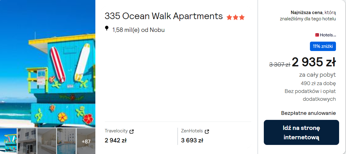 W Miami Beach zatrzymasz się w obiekcie 335 Ocean Walk Apartments, który znajduje się tuż przy plaży. Z lotniska w okolice miejsca noclegowego (przystanek Washington Av & 5 St) dojedziesz komunikacją publiczną lub wypożyczonym samochodem – szczegóły poniżej.