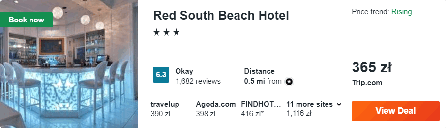 Na Florydzie proponuję wam noclegi nieopodal słynnej Miami Beach, gdzie zatrzymacie się w 3* hotelu Red South Beach. Na miejscu czekają na was komfortowo urządzone pokoje wyposażone w klimatyzację, telewizor LCD, zestaw do parzenia kawy lub herbaty, kuchenkę mikrofalową oraz lodówkę.
