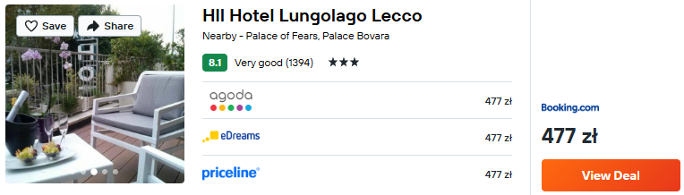 Nad Como zatrzymaj się w bardzo dobrze ocenianym 3* hotelu Hll Lungolago. Na jego terenie znajdziesz między innymi bar oraz restaurację. Obiekt zlokalizowany jest nad samym jeziorem, więc będzie doskonałym miejscem na relaks.