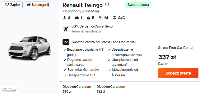 🚘Samochód: Renault Twingo lub podobny