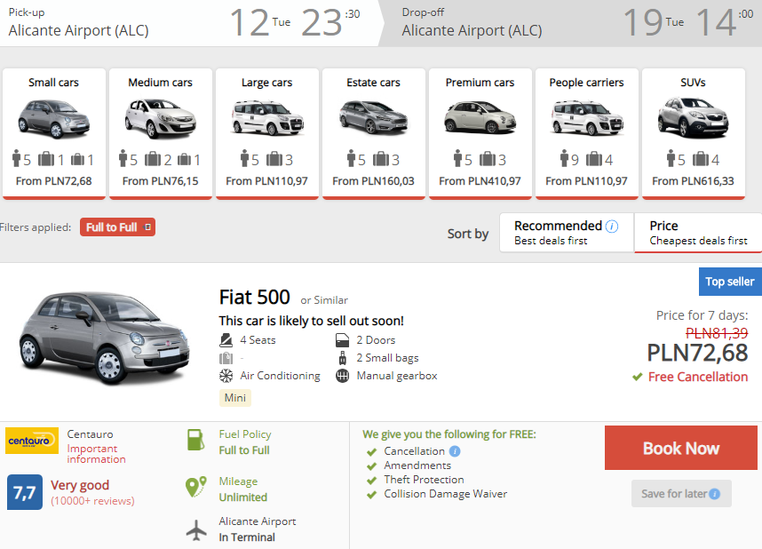 (Aktualizacja) Mam dla Was propozycję wycieczki po słonecznym wybrzeżu Hiszpanii. Dzięki dobrej cenie przelotów oraz super niskiej za wynajem samochodu będziecie mogli wybrać się tam w atrakcyjnej kwocie.