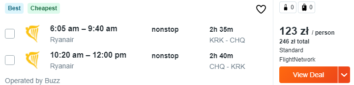 Za loty w dwie strony i wynajem auta zapłacicie w sumie 237 PLN za osobę, przy 2 podróżujących.
