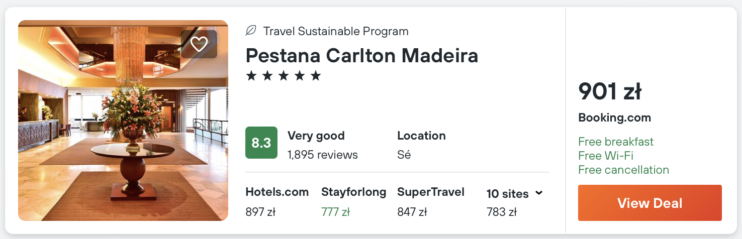 Szukasz zakwaterowania z wyższej półki? Postaw na 5* hotel Pestana Carlton. W cenę pobytu wliczone są śniadania.