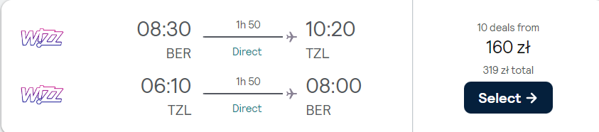 Twoja podróż będzie miała miejsce w dniach 2-7 czerwca (piątek-środa) i odbędzie się na pokładzie samolotów linii lotniczej Wizz Air. Wyjazd rozpocznie i zakończy się na lotnisku w Berlinie, a bez dodatkowych kosztów zabierzesz ze sobą bagaż podręczny. Zaraz po przylocie do Tuzli wynajmij samochód, który ułatwi ci zwiedzanie.