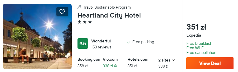 W Tuzli wybrałem dla ciebie 3* hotel Heartland City. W cenę zakwaterowania wliczono codzienne śniadania.