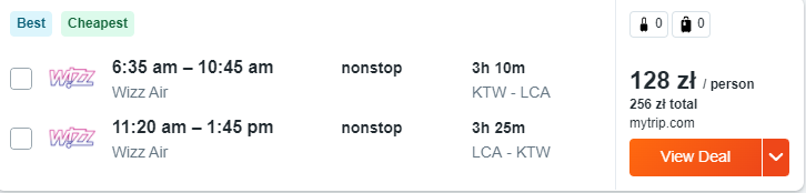 Na Wyspę Afrodyty polecicie 4 marca z lotniska w Katowicach. W Larnace odbierzecie samochód, który ułatwi wam zwiedzanie okolicy. Na miejscu zostaniecie do 11 marca, po czym wrócicie do Polski. W obie strony podróżować będziecie na pokładzie samolotu linii lotniczej Wizz Air.