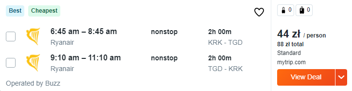 Do Podgoricy polecicie 16 marca z Krakowa. Na miejscu odbierzecie samochód, który ułatwi wam odkrywanie licznych atrakcji w okolicy. W Czarnogórze zostaniecie do 23 marca, po czym wrócicie do Polski. W obie strony podróżować będziecie na pokładzie samolotu linii lotniczej Ryanair.