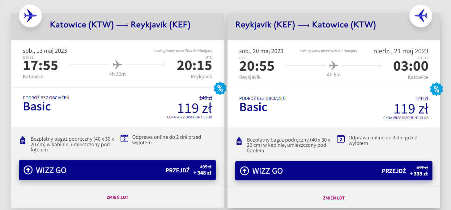 Do Reykjaviku wybierzesz się 13 maja z lotniska w Katowicach. Na miejscu odbierzesz samochód, który ułatwi ci zwiedzanie wspaniałej wyspy, a dodatkowo będzie miejscem noclegowym. Na Islandii zostaniesz do 20 maja, po czym wrócisz do Polski. W obie strony podróżować będziesz na pokładzie samolotu linii lotniczej Wizz Air.