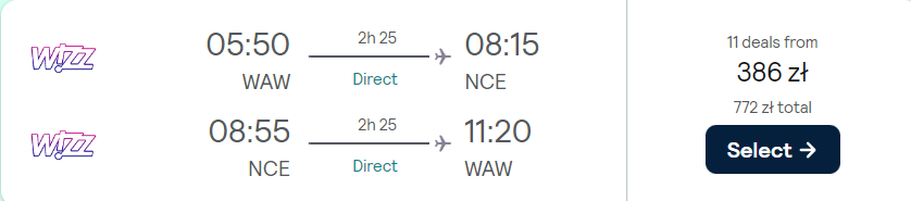 Do Nicei podróżować będziesz z lotniska im. Fryderyka Chopina w Warszawie w terminie 22-29 maja. W obie strony polecisz na pokładzie samolotu linii Wizz Air z wliczonym małym bagażem podręcznym. Zaraz po wylądowaniu w Nicei polecam ci wynająć samochód, który ułatwi ci zwiedzanie Lazurowego Wybrzeża.
