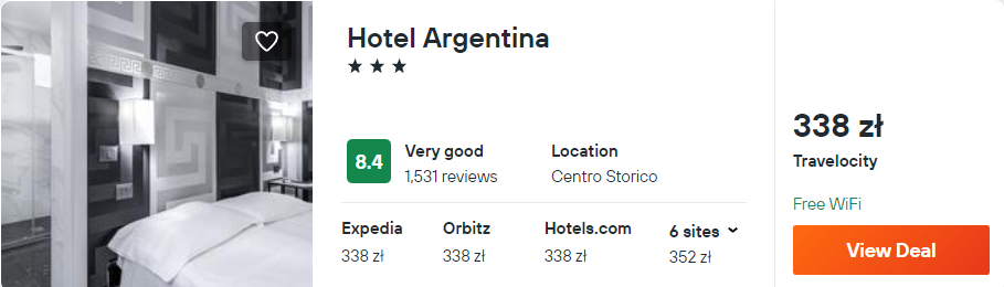 We Florencji polecam noclegi w 3* hotelu Argentina. Obiekt znajduje się w centrum i oferuje nowoczesne pokoje z prywatnymi łazienkami.