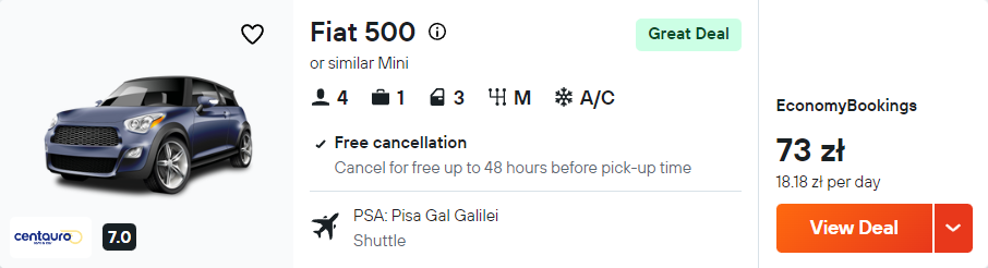Fly&drive po Toskanii za 236 PLN. Loty do Pizy z Krakowa, wynajem samochodu i plan podróży
