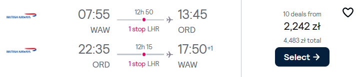 Do USA udasz się w terminie 29 sierpnia – 6 września. Swoją przygodę rozpoczniesz w porcie lotniczym im. Fryderyka Chopina w Warszawie. Podróżować będziesz linią British Airways z przesiadkami w Londynie. W cenę biletów wliczony jest bagaż podręczny oraz przedmiot osobisty.