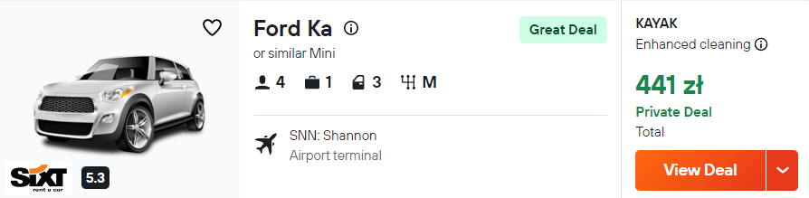 Nad Klify Moheru najłatwiej będzie wam się dostać wypożyczonym samochodem. W przypadku tej podróży wybrałam dla was auto marki Ford Ka lub podobny model.