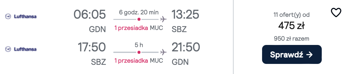 Do Sybinu wybierzesz się z lotniska we Wrocławiu, Krakowie, Gdańsku, Poznaniu lub Warszawie, w terminie 11-14 października (piątek-poniedziałek). W obie strony polecisz linią Lufthansa z bagażem podręcznym. Po drodze przesiądziesz się w Monachium.