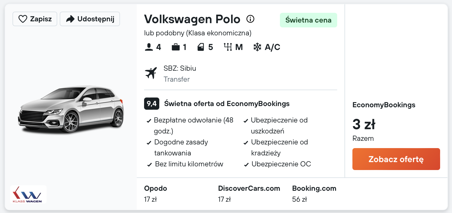 Zaraz po wylądowaniu w Rumunii polecam ci wynajęcie samochodu, który ułatwi ci zwiedzanie regionu.