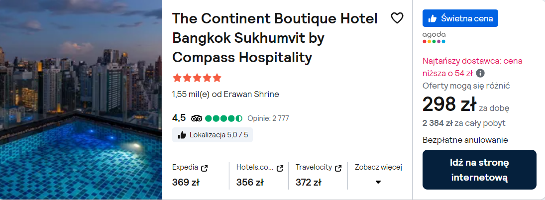 Możesz także rozważyć pobyt w 5* hotelu The Continent Boutique Hotel Bangkok Sukhumvit by Compass Hospitality, który ronież posiada odkryty basen na dachu. Znajduje się on biznesowej części miasta.