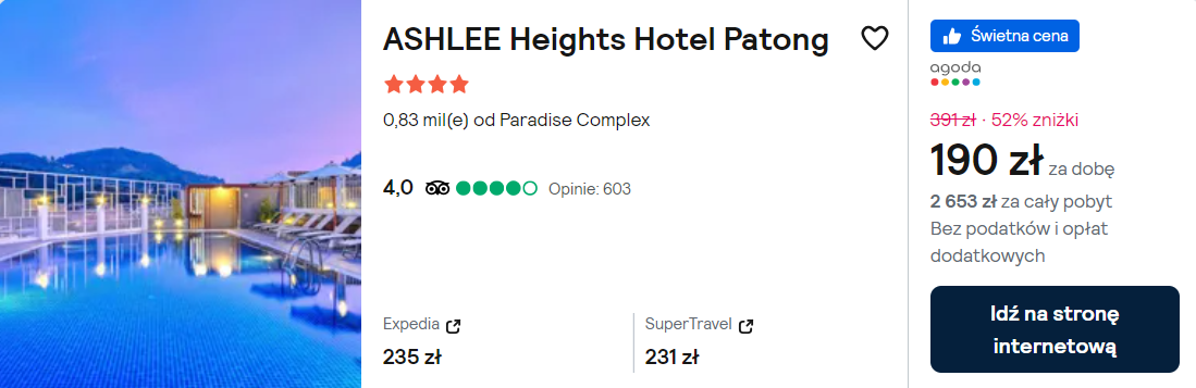Możesz także rozważyć zakwaterowanie w 4* hotelu ASHLEE Heights Patong z odkrytym basenem na dachu. Znajduje się on w odległości 5 minut spacerem od plaży Patong.