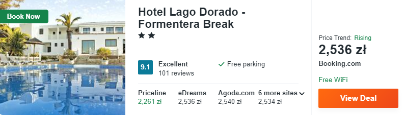 Na Formenterze zatrzymajcie się w świetnie ocenianym hotelu Lago Dorado – Formentera Break. W każdym pokoju znajduje się prywatna łazienka, klimatyzacja, telewizor LCD oraz balkon, a z internetem łatwo połączycie się za pośrednictwem bezpłatnego WiFi.