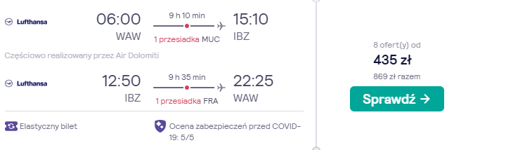 Wasza wycieczka na Baleary zaplanowana została w terminie 3 – 10 czerwca. Czekają was loty z warszawskiego lotniska na pokładzie samolotów 5* linii lotniczej Lufthansa (to jedyny europejski przewoźnik cieszący się najwyższą oceną w rankingu Skytrax) z bezpiecznymi, gwarantowanymi przesiadkami w Monachium i Frankfurcie.