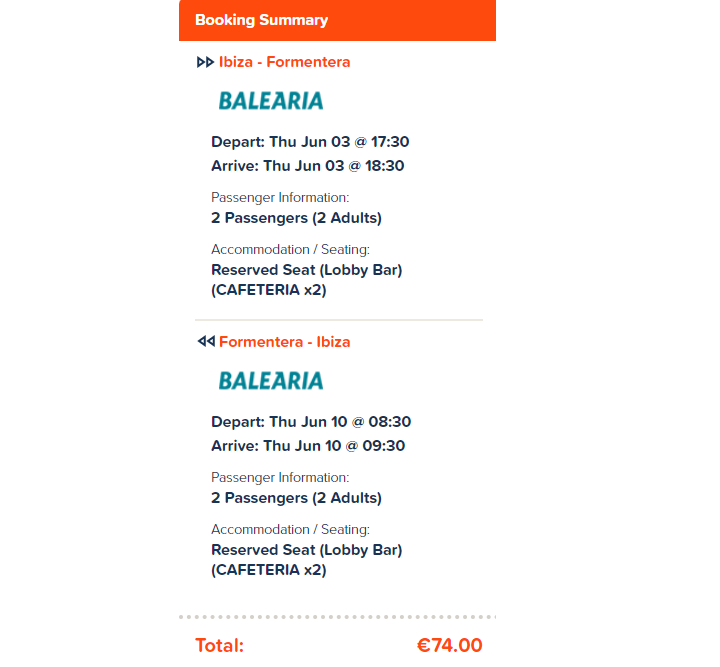 Z Ibizy na Formenterę przedostaniecie się promem armatora Balearia. Za podróż dla 2 osób w obie strony zapłacicie 74 EUR (ok. 336 PLN).