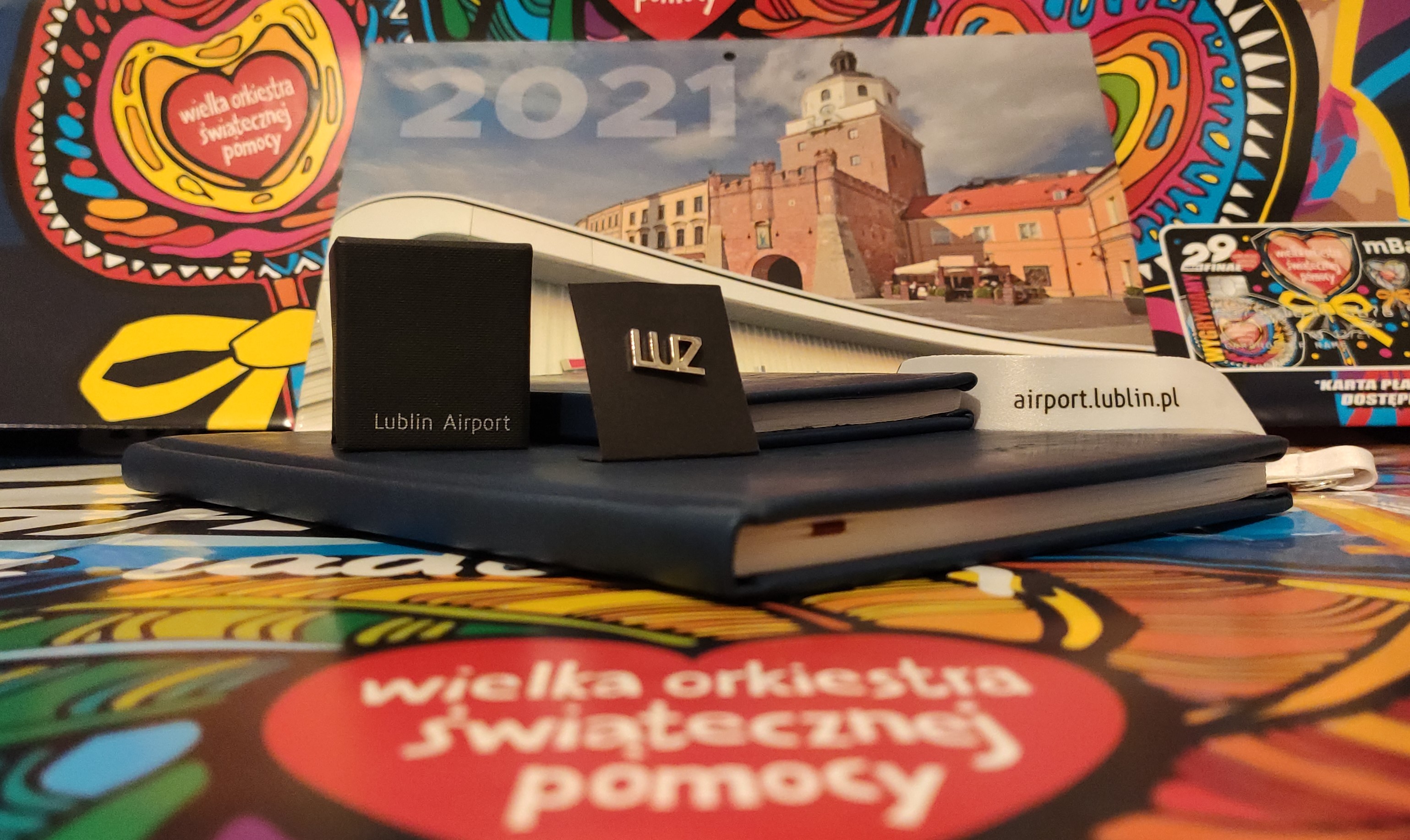 Port Lotniczy Wrocław S.A. wspiera Wielką Orkiestrę Świątecznej Pomocy przekazując na aukcję pakiet firmowych gadżetów, które ucieszą nie tylko miłośnika samolotów czy podróży. Wśród nich są: stonebook – notes biodegradowalny, maskotka follow me, smycz do kluczy, etui na kartę płatniczą, eko torba na zakupy, skarpetki z logo lotniska na chłodne dni oraz ołówek.