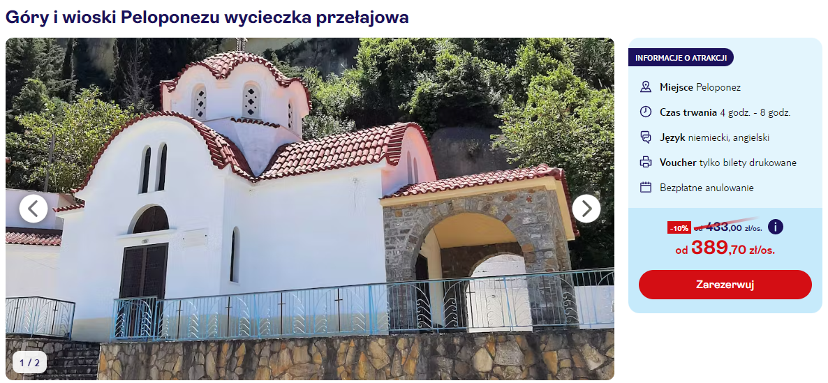 Atrakcje 390 PLN/osoba