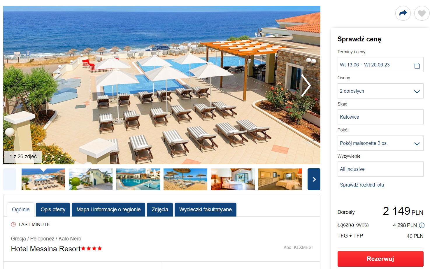 Na Peloponezie będziesz zakwaterowany w bardzo dobrze ocenianym 4* hotelu Messina Resort. Kompleks znajduje się bezpośrednio przy piaszczystej plaży. Na terenie obiektu skorzystasz z basenu zewnętrznego, sportów wodnych oraz tarasu słonecznego. Pokój zawiera TV, prywatną łazienkę, klimatyzację oraz balkon lub taras.