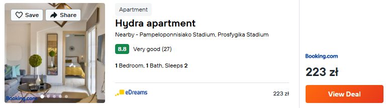 Wybierasz się w okolice Patras? Zarezerwuj noclegi w bardzo dobrze ocenianym apartamencie Hydra.