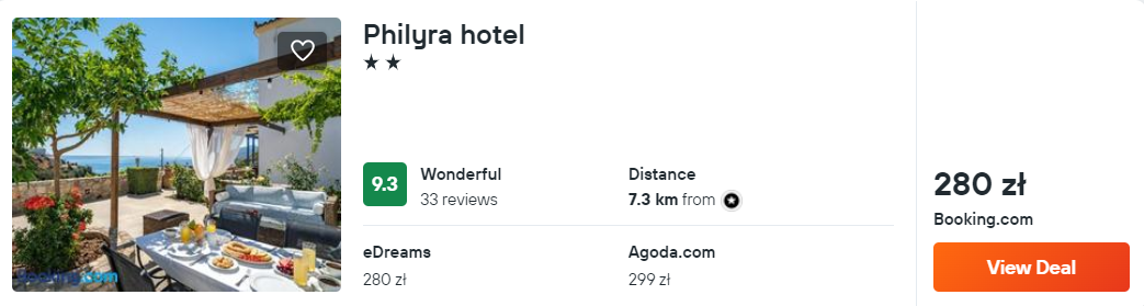 Na wyspie Kithira proponuję ci noclegi w hotelu Philyra, który znajduje się w miejscowości Agía Pelagía. Obiekt od najbliższej plaży (Agia Pelagia) oddalony jest o 10 minut spokojnego spaceru. W każdym pokoju jest aneks kuchenny, balkon oraz łazienka.