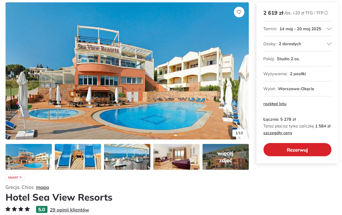 Do Grecji wybierzesz się w dniach 14-20 maja. Na Chios polecisz linią Sky Express z Warszawy, a po drodze przesiądziesz się w Atenach. W cenę wliczona jest podróż z bagażem podręcznym i rejestrowanym, podstawowe ubezpieczenie, transfery oraz śniadania i obiadokolacje.