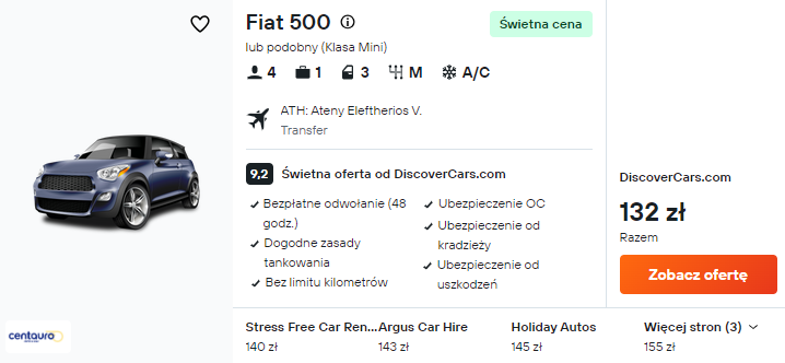 Następnie tuż po wylądowaniu w Grecji wynajmij samochód, który zapewni swobodę zwiedzania. Dzięki niemu sprawnie dostaniesz się do miejsca zakwaterowania.