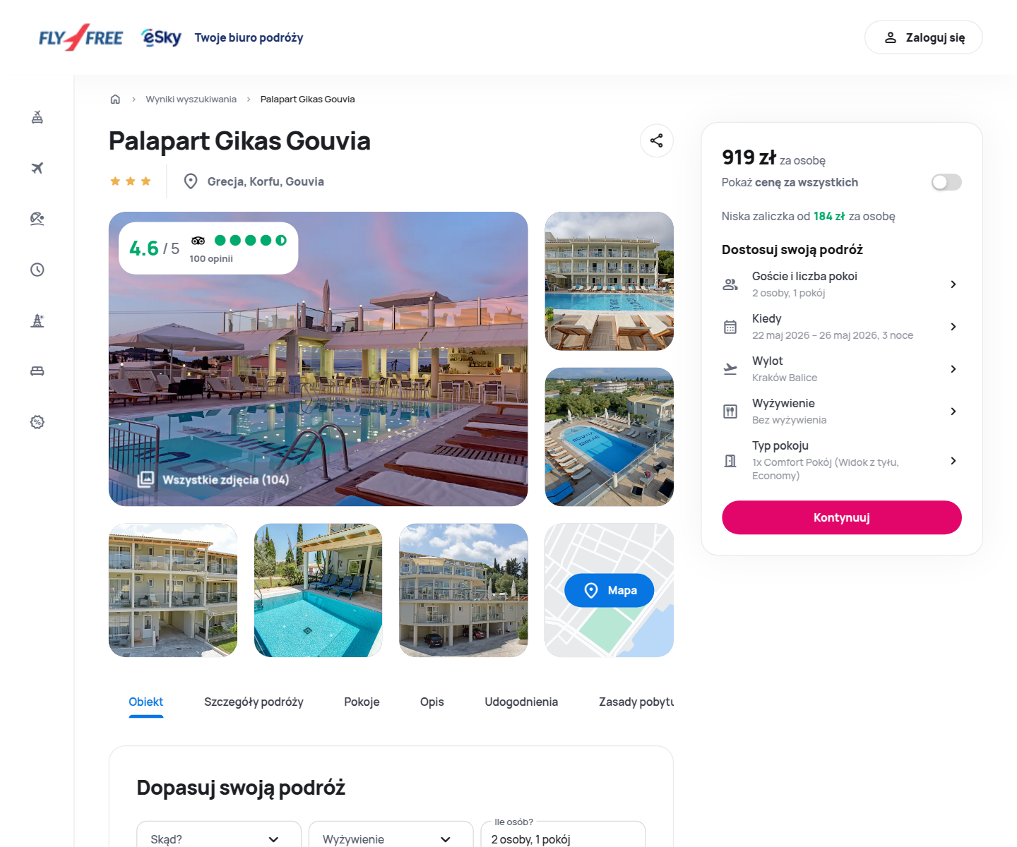 Na Korfu polecisz z Krakowa w dniach 22-25 maja. W obie strony podróżować będziesz liniami Ryanair z bagażem podręcznym.