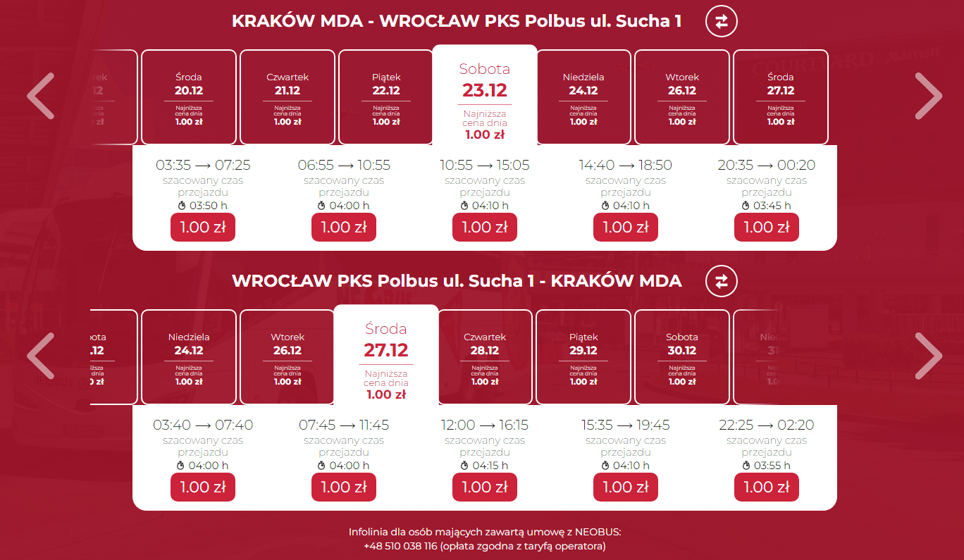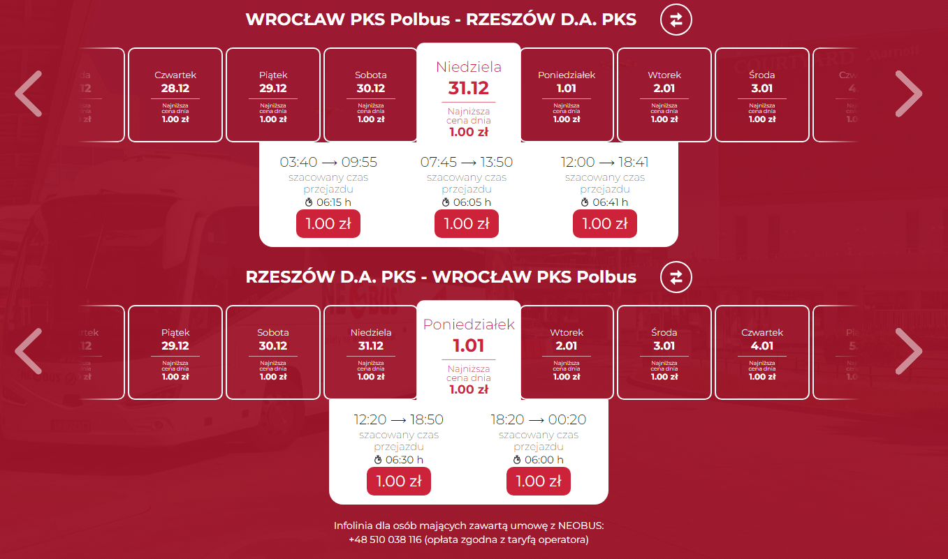 Zarezerwuj bilety NEOBUS w grudniu i styczniu od 1 PLN >>