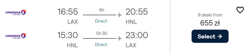 Druga część to bezpośredni lot linią Alaska Airlines z Kalifornii na Hawaje i z powrotem. Bez dodatkowych kosztów całą wycieczkę odbędziesz z bagażem podręcznym oraz przedmiotem osobistym (małym plecakiem i damską torebką).