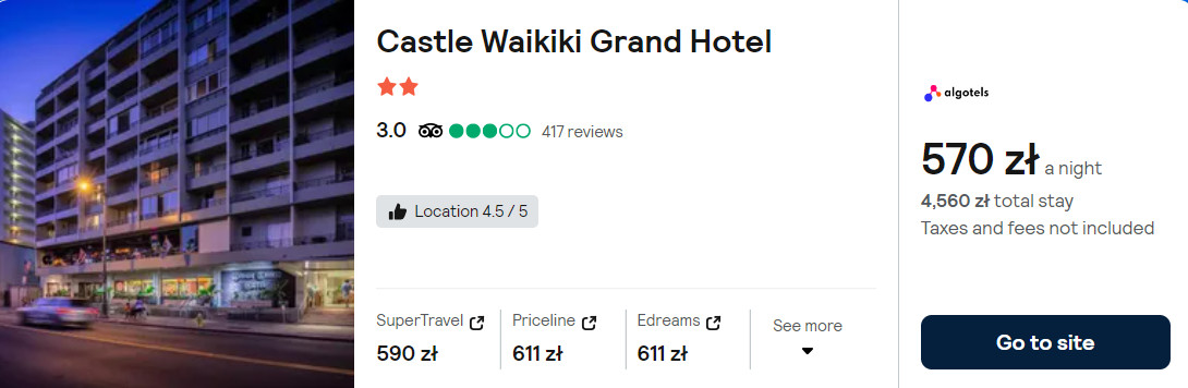 Na wyspie O’ahu zatrzymaj się w hotelu Castle Waikiki, który od najbliższej plaży oddalony jest o 2 minuty spokojnego spaceru. Każde studio składa się z aneksu kuchennego, miejsca do spania oraz łazienki.