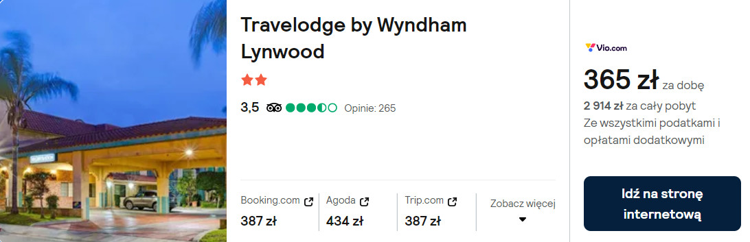 W Los Angeles proponuję ci noclegi w hotelu Travelodge by Wyndham Lynwood, który znajduje się nieopodal centrum handlowego Plaza Mexico. Wszystkie pokoje wyposażone zostały w klimatyzację, telewizor LCD, kuchenkę mikrofalową, lodówkę i zestaw do parzenia kawy lub herbaty. W każdym jest łazienka z wanną i prysznicem.